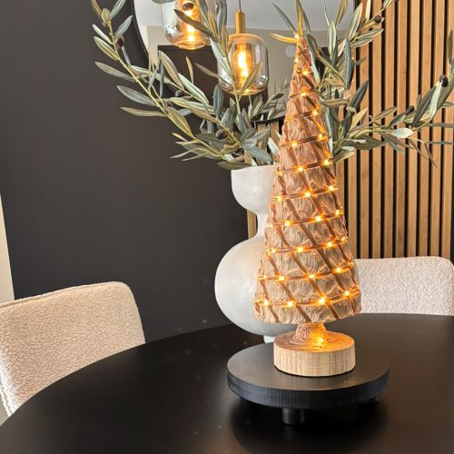 Zoek je dit jaar echt iets bijzonders voor in huis? Dit mooie kerstboompje in de kleur naturel met USB LED verlichting biedt de warme uitstraling die hoort bij de decembermaand. Harm zaagt dit boompje op ambachtelijke wijze uit een massief stuk hout. Echt handwerk, dus ieder boompje is uniek. Het boompje is subtiel maar toch mooi aanwezig. Door zijn vormgeving is het ideaal te plaatsen in bijvoorbeeld een vensterbank of op een bijzettafel. Of je de lampjes nou wel of niet laat branden, dit boompje is een mooie toevoeging aan uw inrichting in huis.