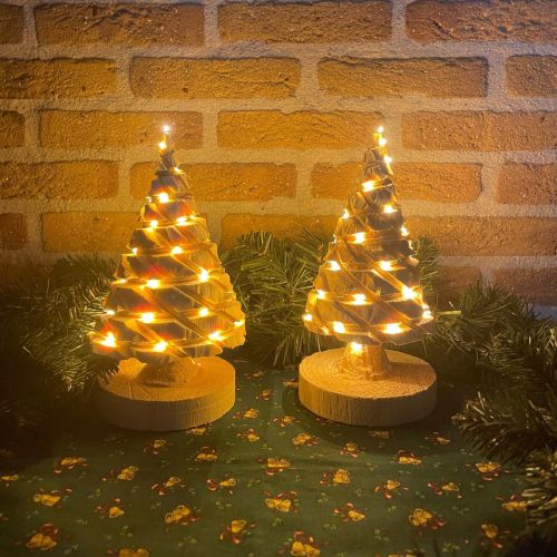 Kerstboompjes set 25cm naturel (2x) batterij LED-verlichting